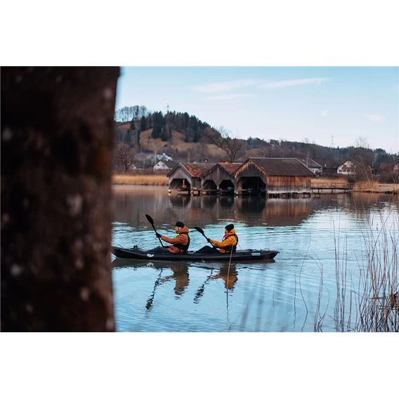 Dank der smarten Kombination aus innovativer Bug- und Kiel Konstruktion sowie Drop-Stitch Technologie, bietet das RUSH zahlreiche Möglichkeiten. Das RUSH ist geeignet für Erholungs-Paddeltouren, Bootswandern, ruhige Seen, Küstennähe, bis hin zu Wildwasserstufe II. Optional lässt sich das Kajak mit einem Steuerruder und / oder einer Spritzdecke nachrüsten. Das RUSH 2 kann durch das durchdachte Sitz-Beschlag-System sowohl solo als auch zu zweit gepaddelt werden. Die Drop-stitch-Technologie basiert auf der Verbindung der oberen und unteren Schichten des Gewebes mit Tausenden von Polyesterfasern. Dieses, mit einer luftdichten Beschichtung versehene Gewebe, ist von beiden Seiten mit einem widerstandsfähigen NITRILON®-Material geschützt. Dank der Tausenden Fasern, die beiden Schichten zusammenhalten, können Produkte aus Drop-stitch einen hohen Druck aushalten. Durch aufpumpen wird das Material sehr fest und kommt der Beschaffenheit eines Festkajaks sehr nahe, wobei das Packmass weiterhin klein bleibt.