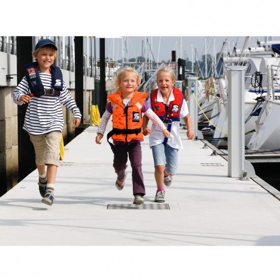 100N Kinder-Feststoffweste (5-30 kg). Für Kinder und Kleinkinder, verfügbar in 4 Größen mit Einstiegsgröße ab 5 kg. Baumustergeprüft und zugelassen nach ISO 12402. Eingeschränkt ohnmachtssicher.