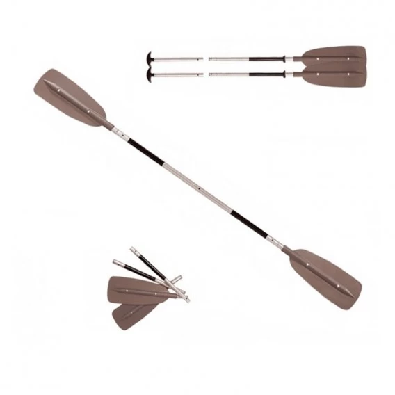 - Doppelpaddel, kann getrennt auch als zwei Stechpaddel eingesetzt werden